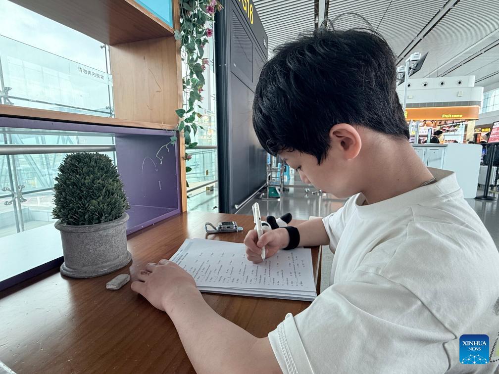 Li Yongqiu does his homework at the airport in southwest China's Chongqing on April 14, 2026. Li Yongqiu, a 13-year-old Chinese boy, claimed gold in Junior Dance Tour at the Juste Debout 2026 World Finals in Paris, France on March 8, 2026, making history. It is a famous street dance event and brings together the best dancers from around the world. During the finals, Li performed a special routine. He combined breakdancing moves with Kung Fu. It made a deep impression on both the spectators and judges. Li started learning breaking when he was 8 years old. He joined the Chongqing breaking team in 2022. The team helps young dancers like him grow and compete at a high level. Li trains hard five to six days a week. Even with all that training, he still finds time to keep up with school. His hard work and strong spirit helped him become a champion. (Xinhua)