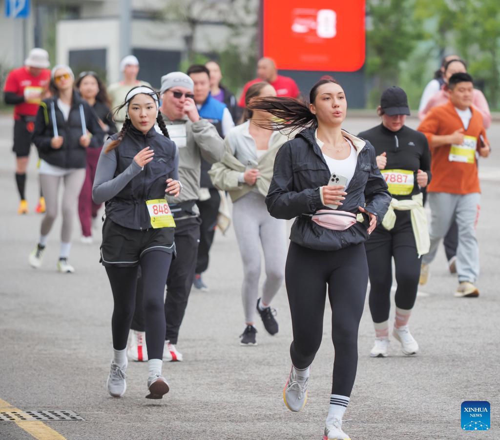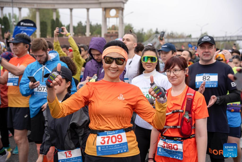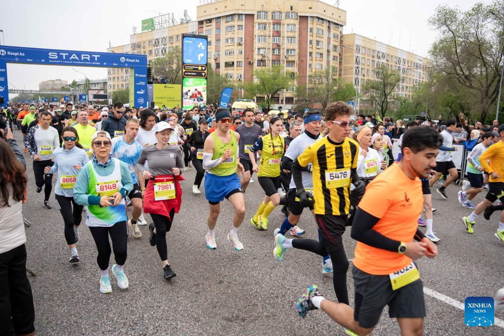 Participants take part in the Almaty Half Marathon 2026 in Almaty, Kazakhstan, April 19, 2026. (Str/Xinhua)