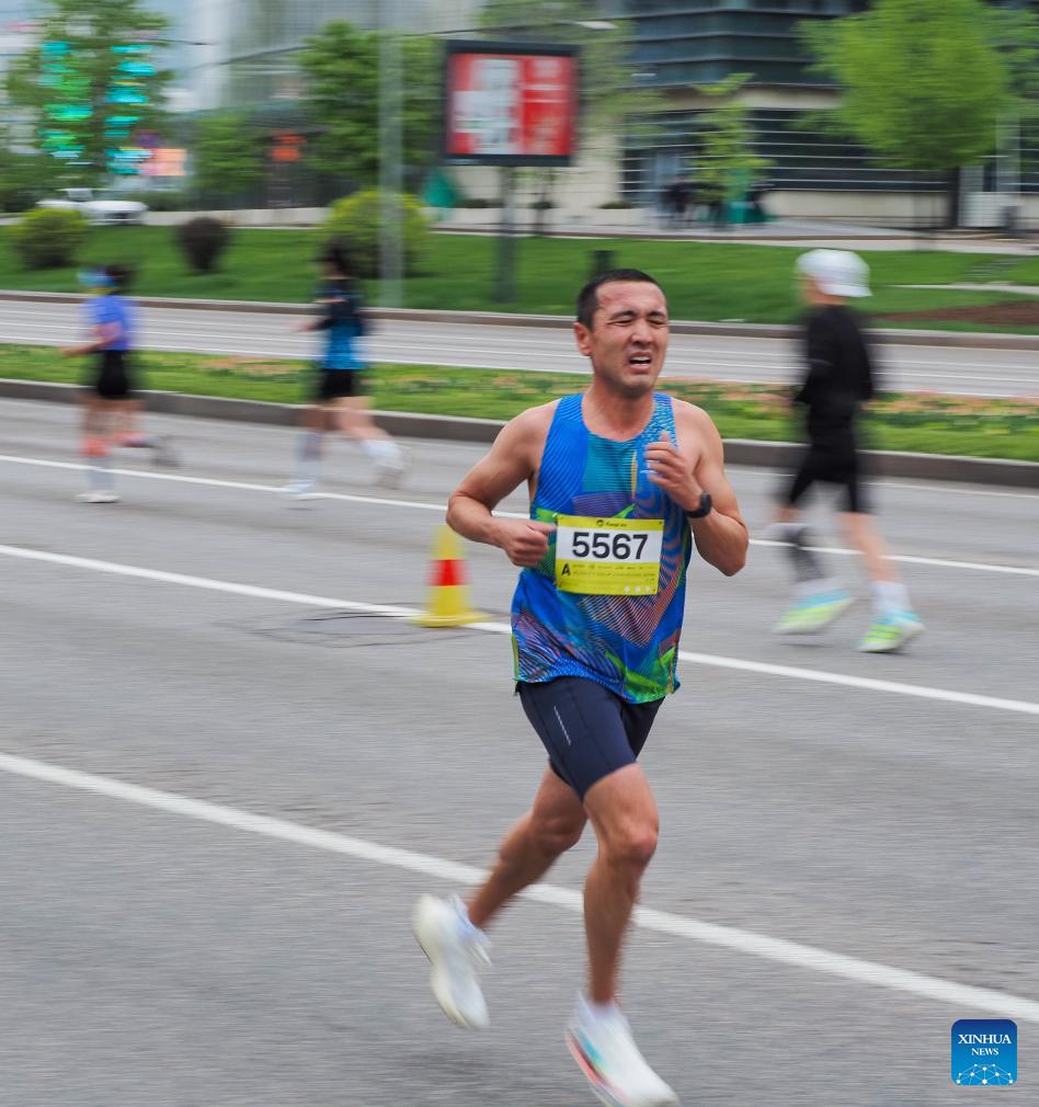A participant takes part in the Almaty Half Marathon 2026 in Almaty, Kazakhstan, April 19, 2026. (Xinhua/Zhao Yu)
