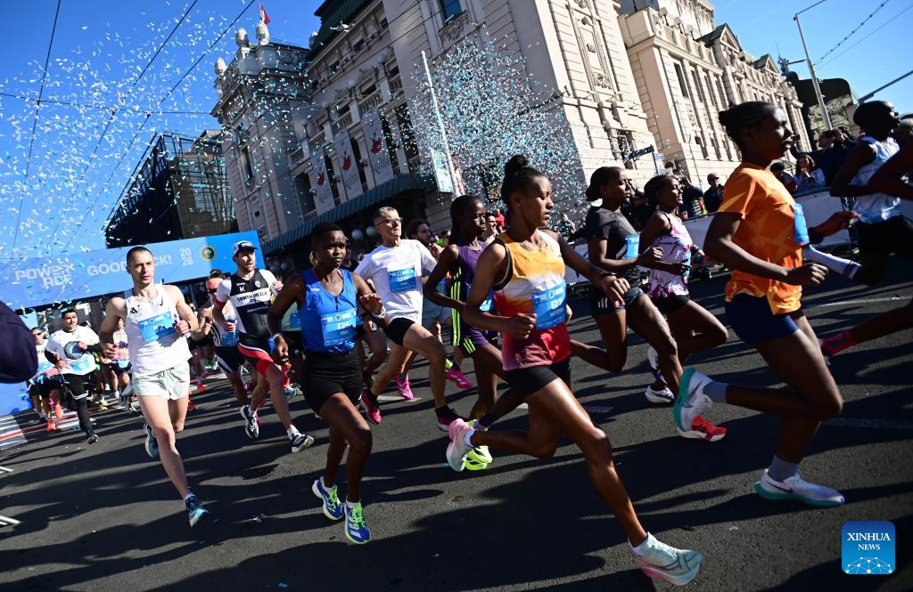 Runners compete during the 39th Belgrade marathon in Belgrade, Serbia, on April 19, 2026. (Photo by Predrag Milosavljevic/Xinhua)