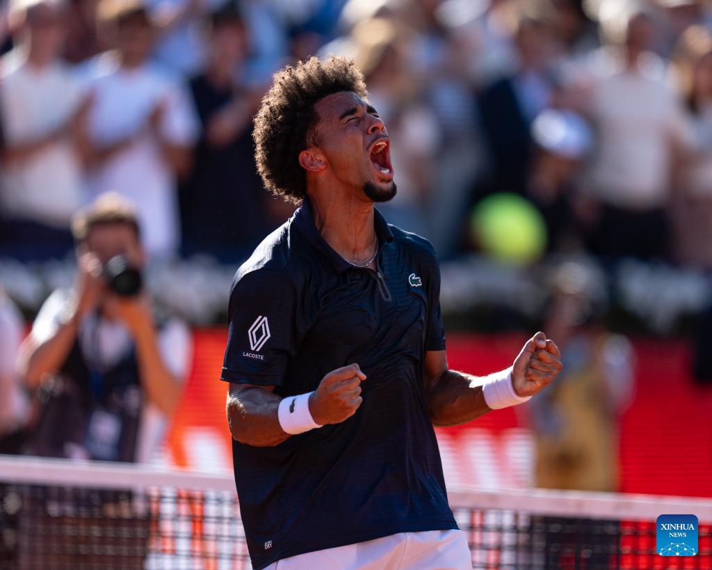Arthur Fils of France celebrates after winning the men's singles final tennis match between Arthur Fils of France and Andrey Rublev of Russia at the ATP Barcelona Open Banc Sabadell 2026 in Barcelona, Spain, on April 19, 2026. (Photo by Joan Gosa/Xinhua)