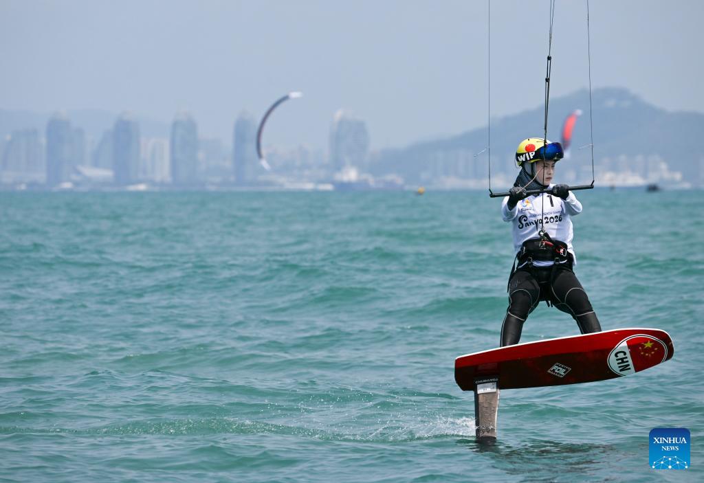 Li Shuxuan of China competes during the Formula Kite Women race of sailing at the 6th Asian Beach Games in Sanya, south China's Hainan Province, April 23, 2026. (Xinhua/Wei Hai)