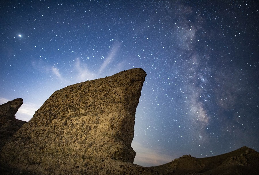 Photo taken on Aug. 13, 2021 shows a section of the Great Wall under the starry sky in Yinchuan City, northwest China's Ningxia Hui Autonomous Region. (Photo: Xinhua)