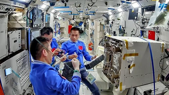 China's Shenzhou-17 crew work in China's space station. (Photo: CMS)