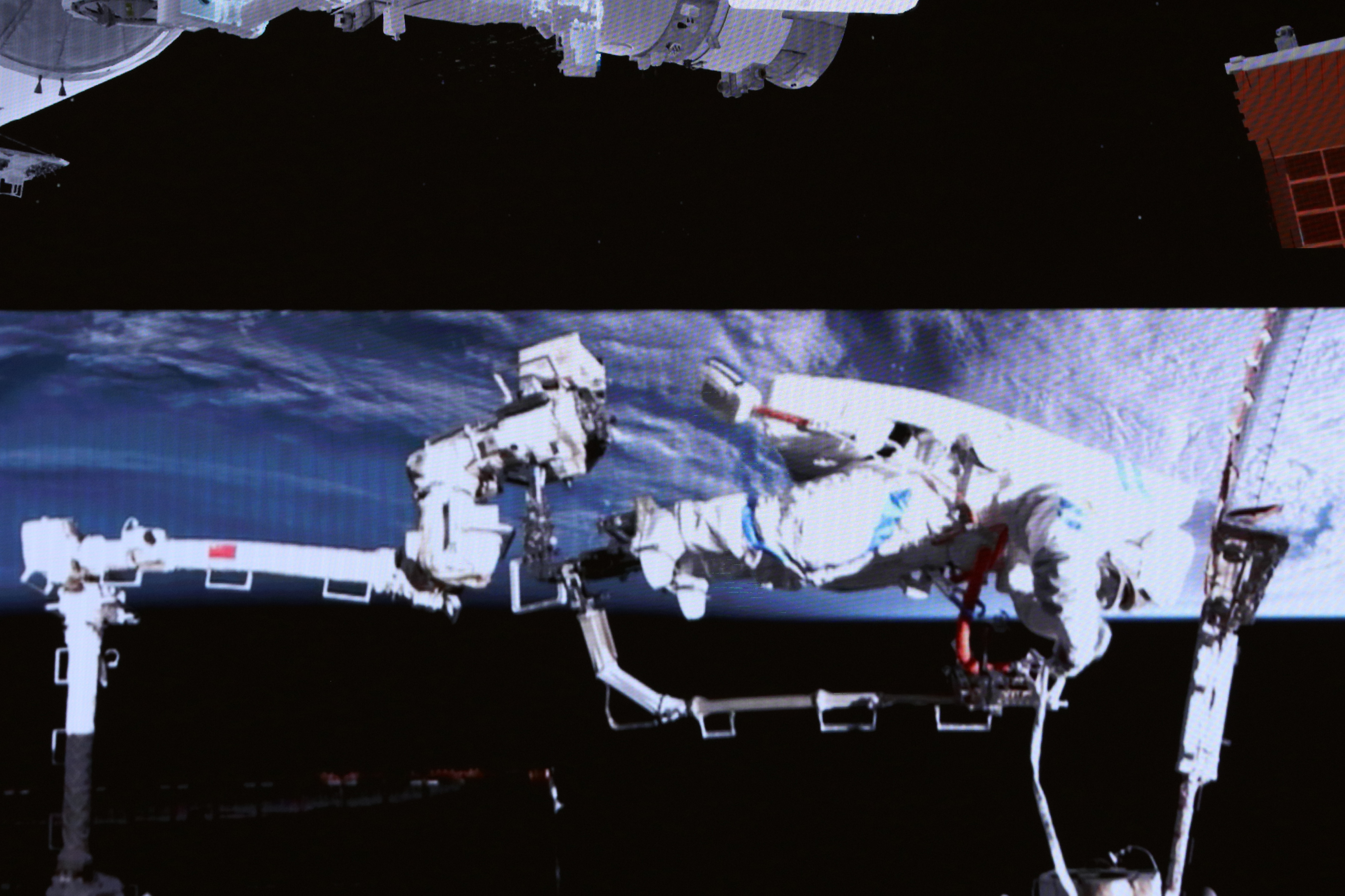 The astronaut trio -- Zhang Lu, Wu Fei and Zhang Hongzhang -- worked for roughly seven hours and completed their tasks at 7:35 p.m. (Beijing Time), assisted by the space station's robotic arm and a team on Earth.
