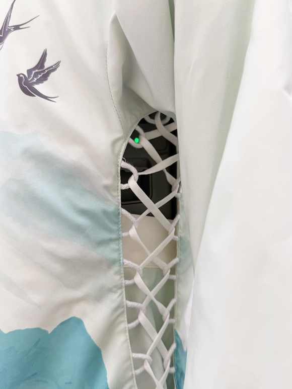 The sides of the dancing robot's outfit feature laced cutout panels that improve ventilation. (Photo courtesy of the interviewee)