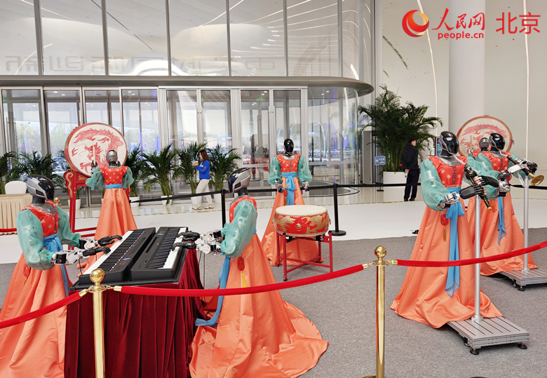 Robots wearing traditional Chinese-style clothing stage a performance at the 2026 Zhongguancun Forum in Beijing. (People's Daily Online/Li Bo)