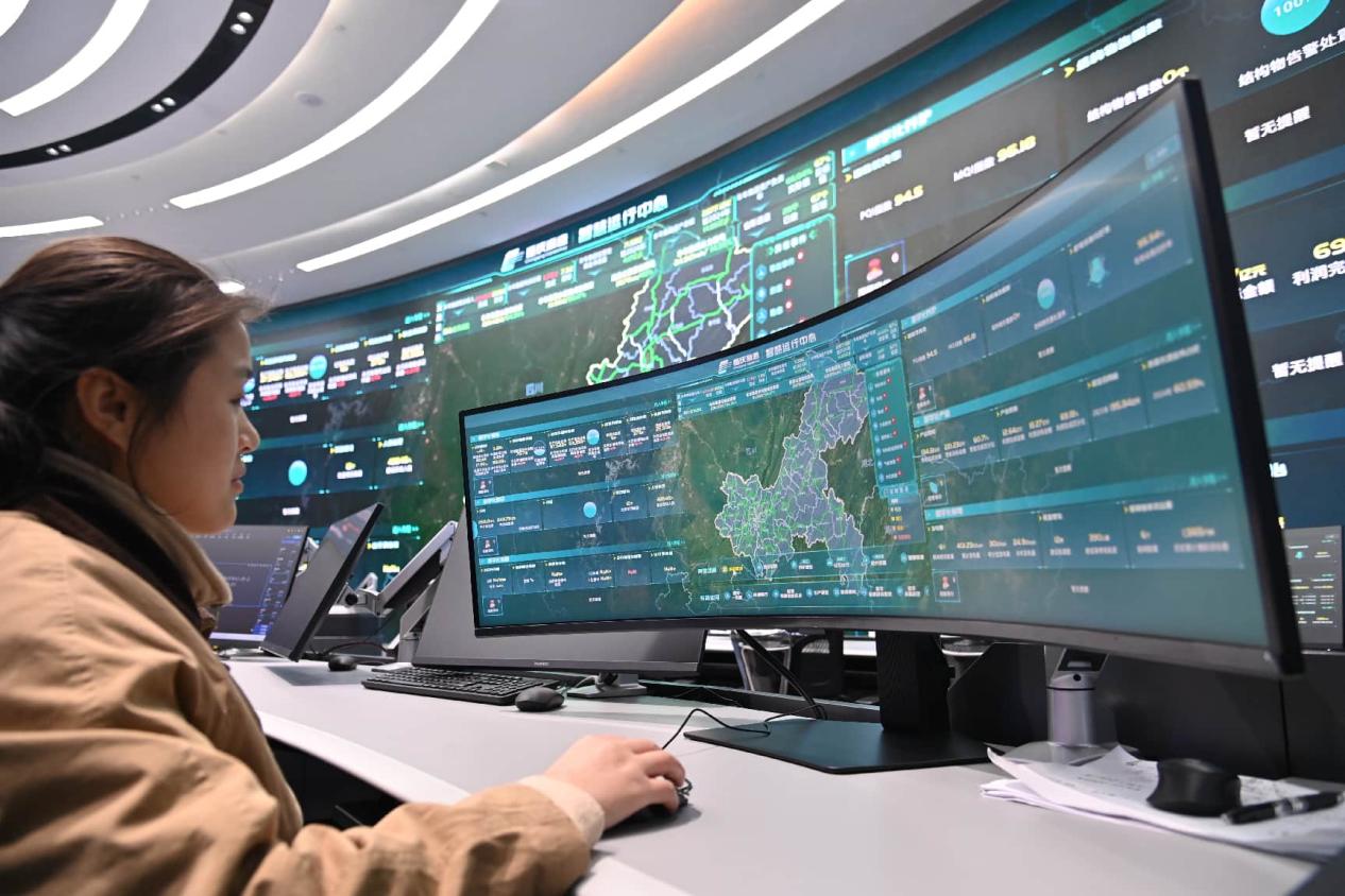 An employee of Chongqing Expressway checks real-time data of expressways in the company's intelligent operations center. (Photo: Sun Kaifang)