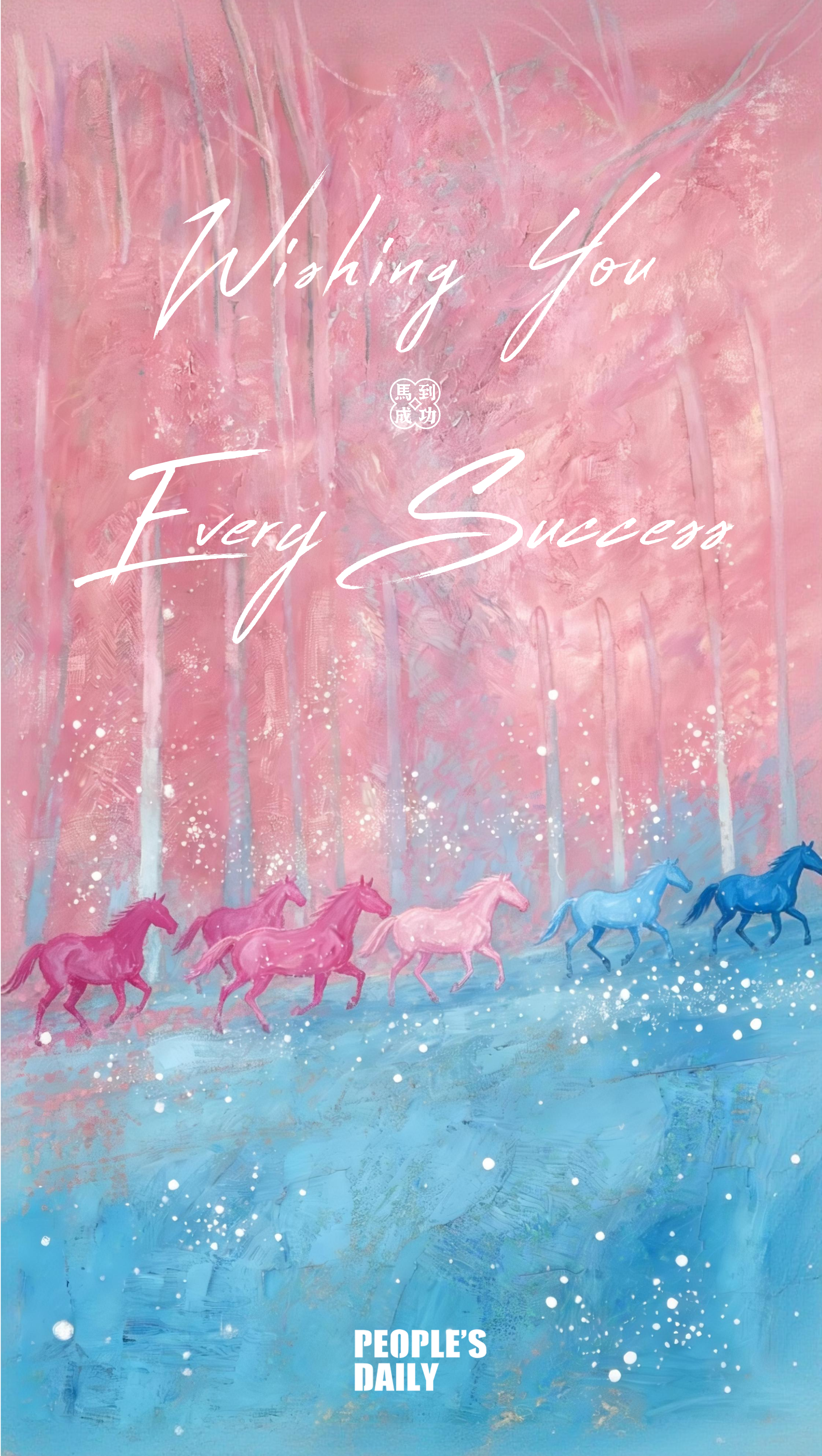 Enjoy this painting inspired by the French artist Andre Brasilier, where horses run through a world of pink and blue, evoking a sense of new beginnings. Wishing you a year in which your dreams come true swiftly and surely. This image was created with AI. (Produced by intern Lu Xingyu, editors Lin Rui and Lou Qingqing)