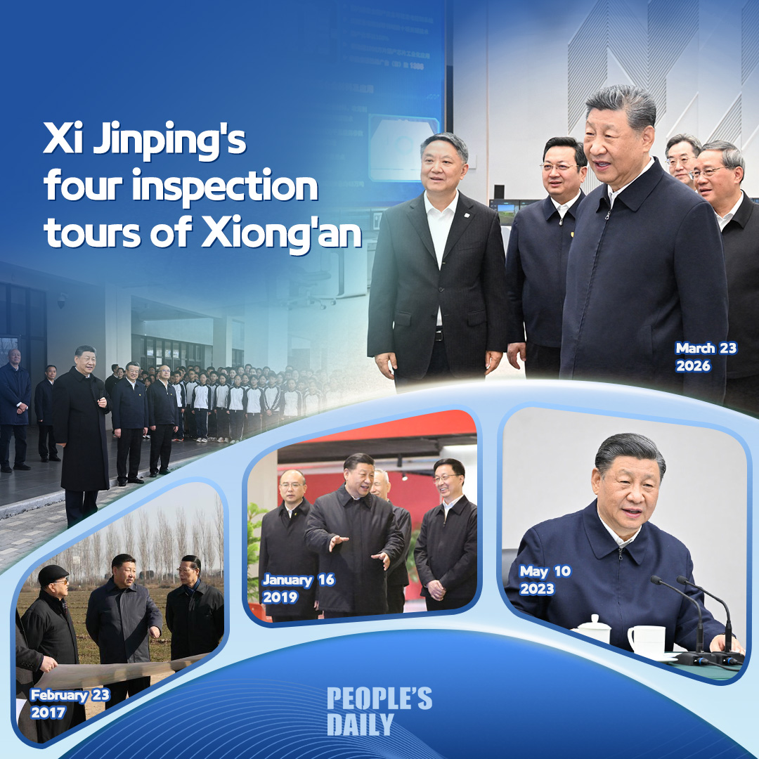 Since its establishment in April 2017, the Xiong'an New Area has grown from a blueprint into a vibrant, emerging city. Xi, also Chinese president and chairman of the Central Military Commission, has consistently placed strong emphasis on its development, with Monday marking his fourth inspection visit.