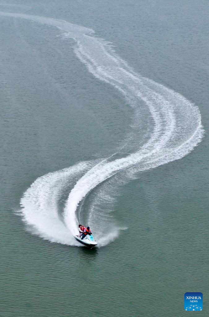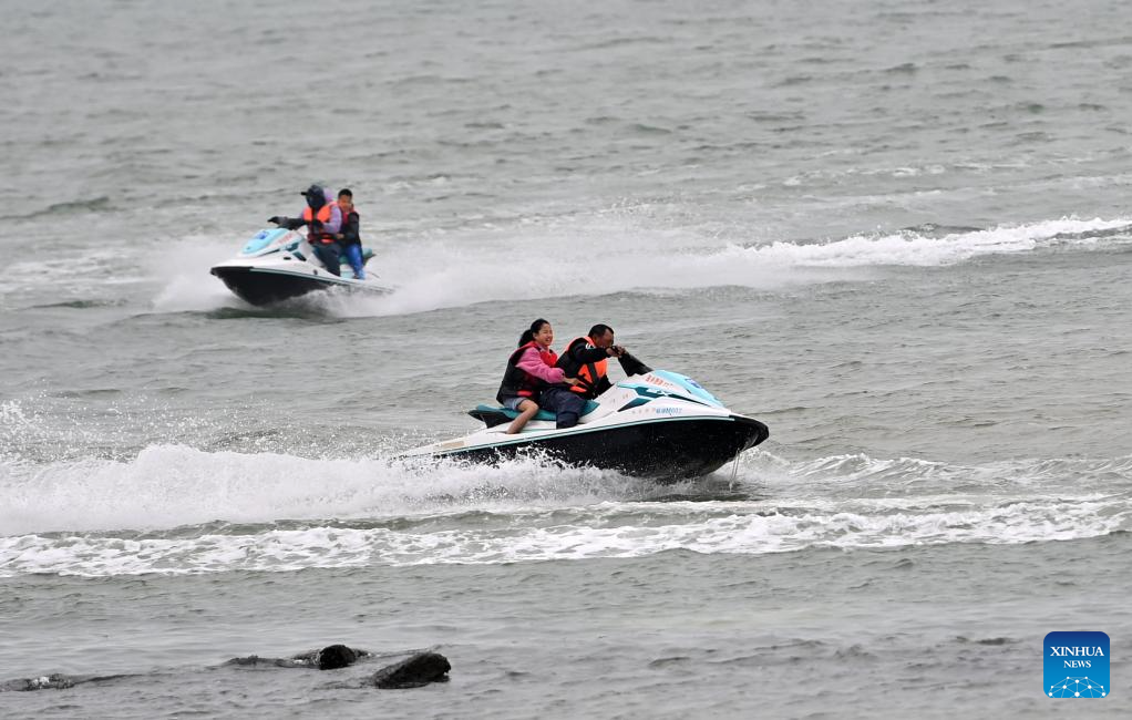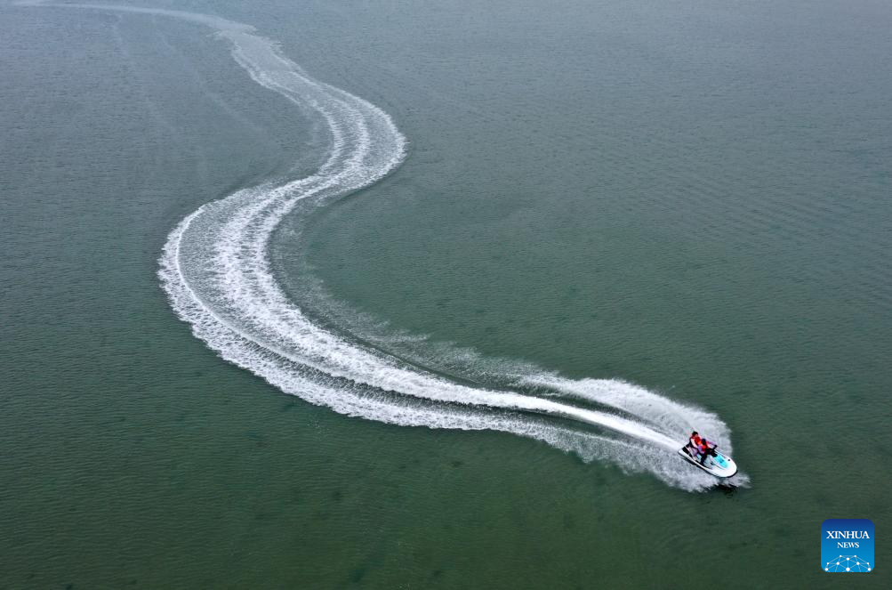 Tourists enjoy water activities in the sea near Beihai City, south China's Guangxi Zhuang Autonomous Region, Feb. 5, 2026. (Xinhua/Lu Boan)