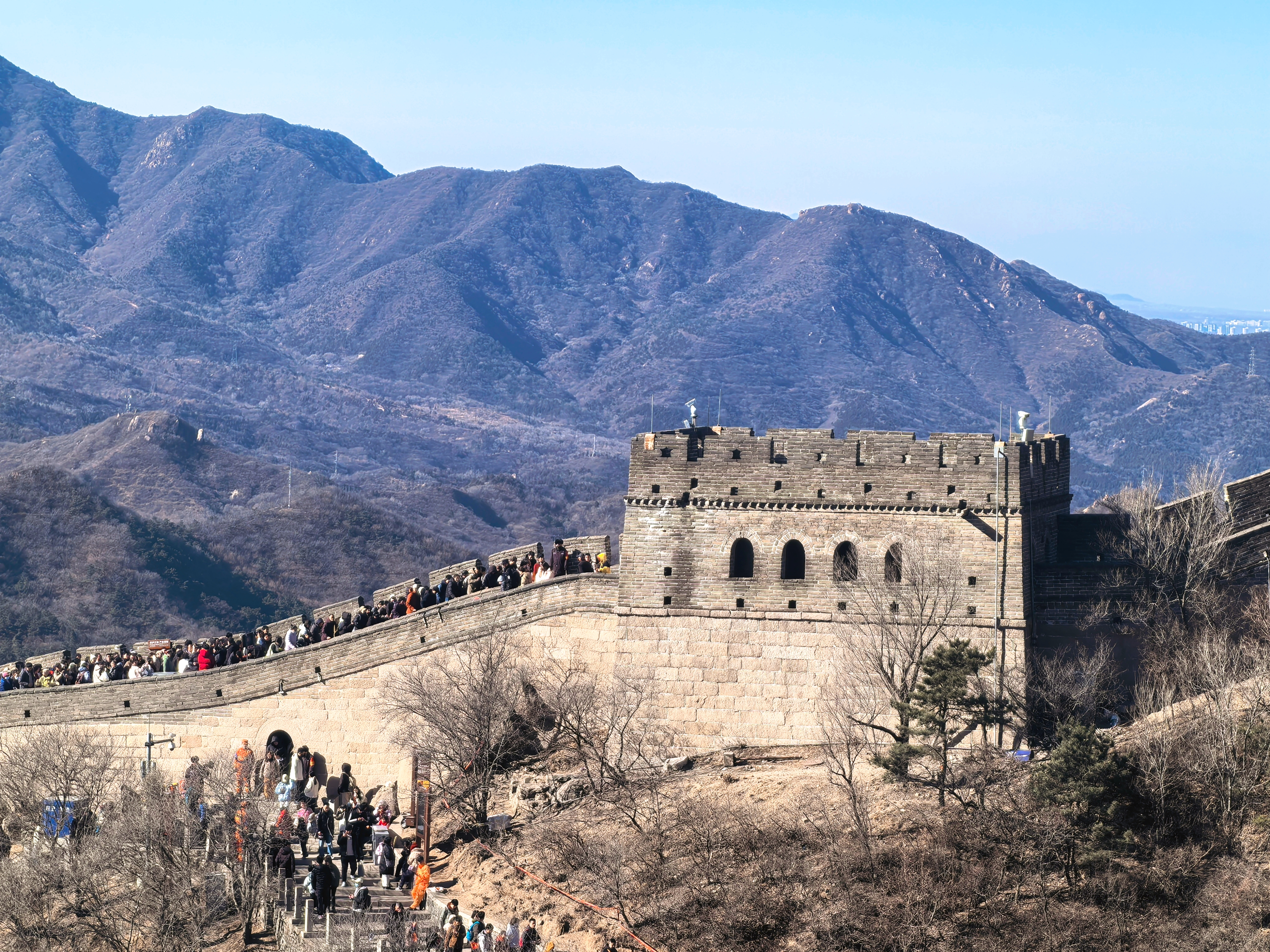 During the 2026 Chinese New Year (Spring Festival) holiday, Beijing's Badaling Great Wall is filled with a strong festive atmosphere, attracting crowds of tourists from all over.