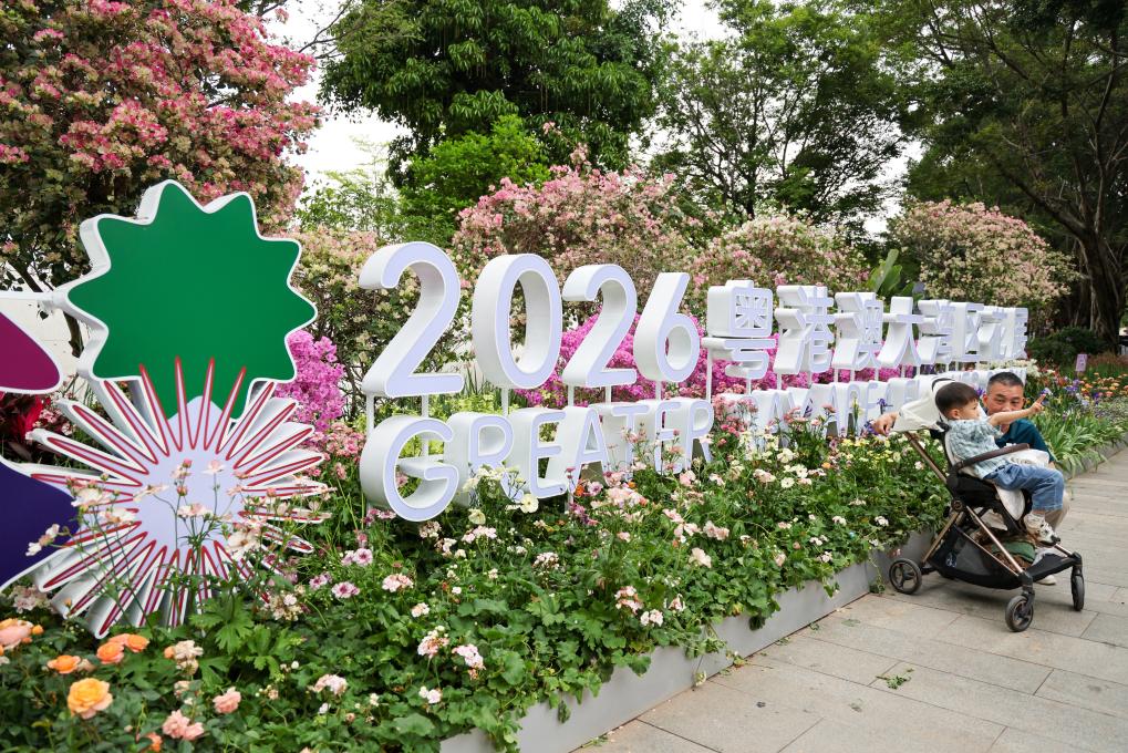 People visit a flower show in Shenzhen, south China's Guangdong Province, on March 27, 2026. The 2026 Guangdong-Hong Kong-Macao Greater Bay Area (GBA) Flower Show kicked off on Friday at Bijiashan Sports Park in Shenzhen, and will run until April 6. (Xinhua/Liang Xu)