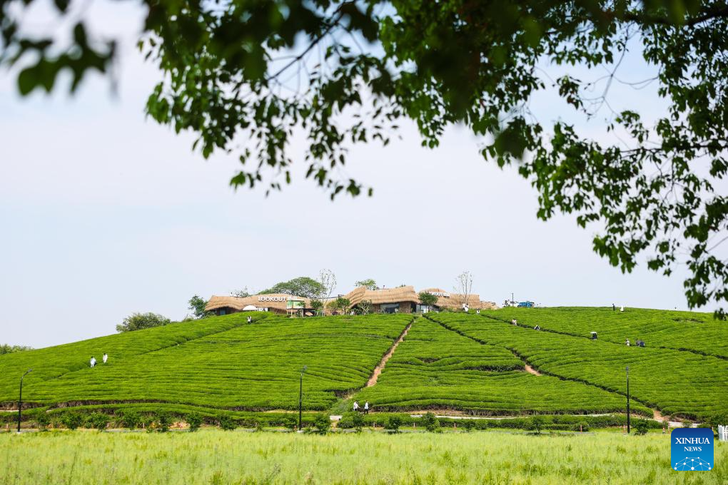 This photo taken on April 26, 2026 shows a cafe located in a tea garden in Xiaogucheng Village of Jingshan Town in Yuhang District of Hangzhou City, east China's Zhejiang Province. Currently, Hangzhou has developed a series of rural cultural tourism projects, attracting tourists for sightseeing and consumption, and infusing new vitality into the local "spring economy." (Xinhua/Jiang Han)