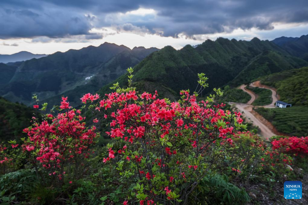 Blooming alpine azaleas are seen in Jinling Village of Pingmen Township in Chun'an County, east China's Zhejiang Province, April 24, 2026. Located over 1,000 meters above sea level, Jinling Village is one of the highest-altitude villages in Chun'an County. In recent years, the village has leveraged its rich natural resources to develop rural cultural and eco-friendly tourism. By improving infrastructures, building camping sites and viewing platforms, as well as promoting homestays, Jinling Village has gradually established an industry centering hiking, sightseeing and summer retreat, boosting income for local villagers. (Xinhua/Xu Yu)