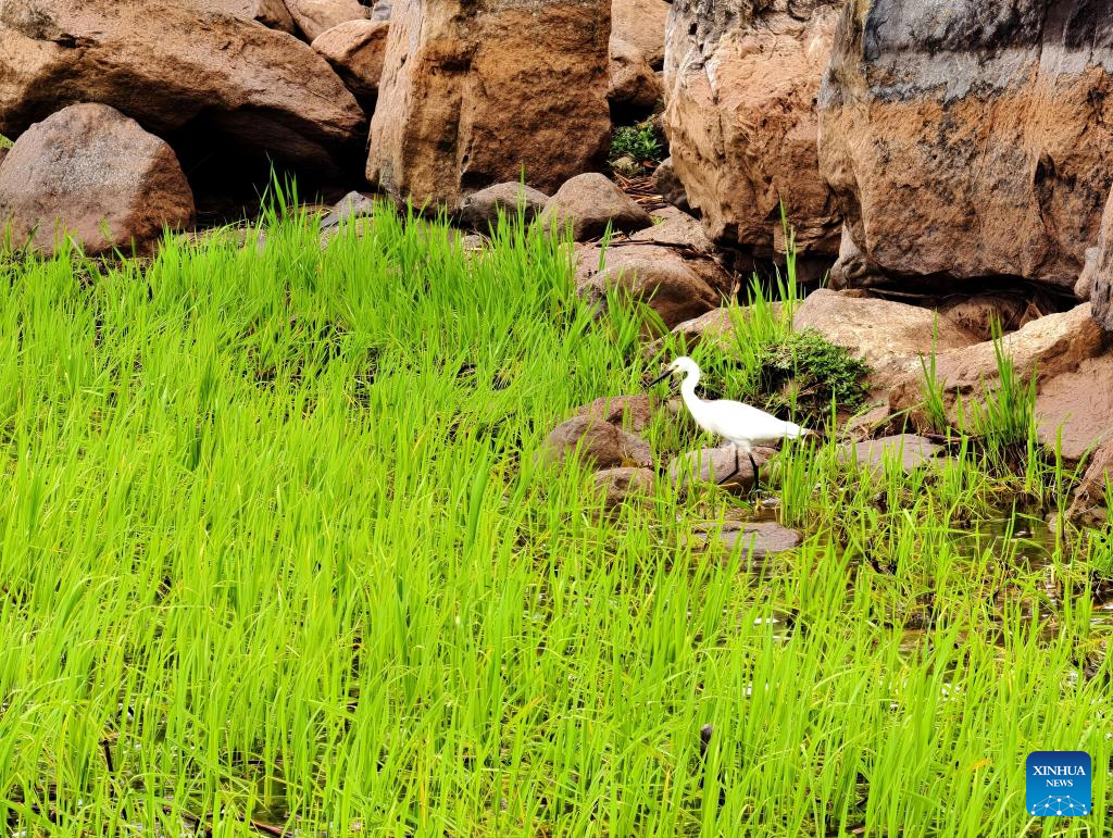 An egret forages in the morning by Erhai Lake in Dali, southwest China's Yunnan Province, April 29, 2026. (Xinhua/Xing Guangli)