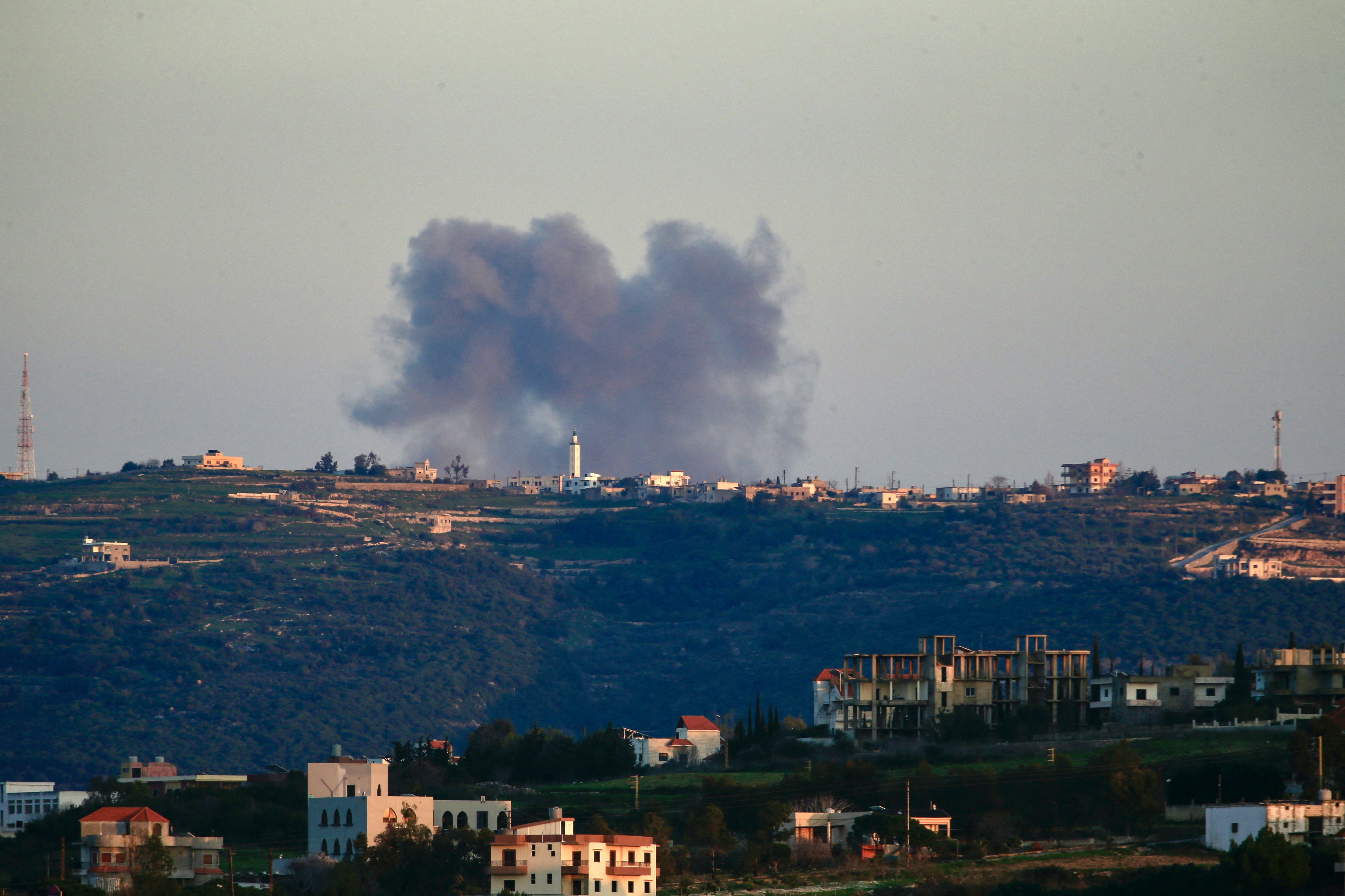Smoke billows following an Israeli air raid that targeted an area between the Lebanese border villages of Ramia and Marwahin on February 21, 2024. (File photo: AFP)