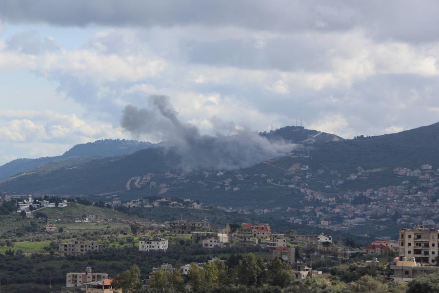 This photo taken on March 15, 2024 shows smoke caused by an Israeli airstrike in Kafr Kila, Lebanon. (Photo: Xinhua)