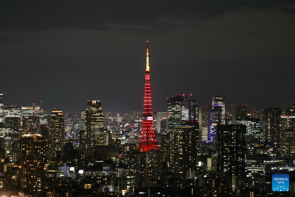 Tokyo Tower is lit up in red to celebrate the upcoming Chinese Lunar New Year, or Spring Festival, in Tokyo, Japan, Feb. 9, 2024. (Photo: Xinhua)