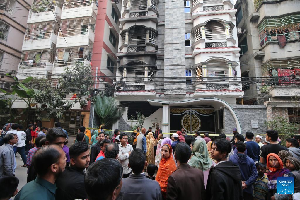 DHAKA, Jan. 16 (Xinhua) -- At least 6 people were killed and 13 others injured after a fierce fire tore through a residential building in the Bangladeshi capital, Dhaka, on Friday morning.