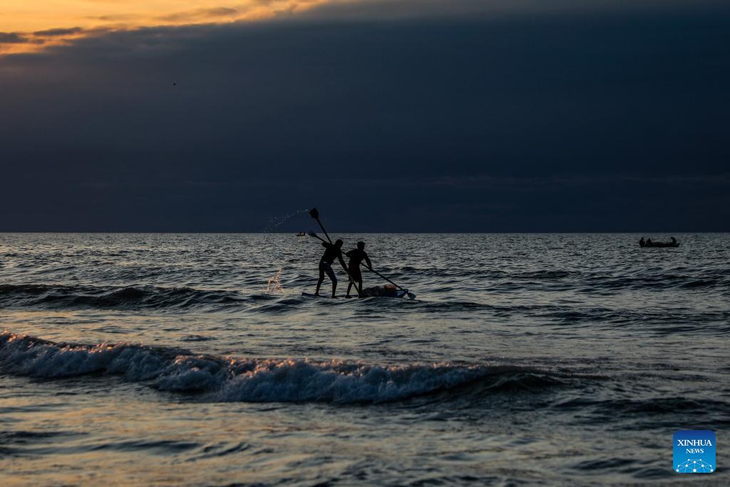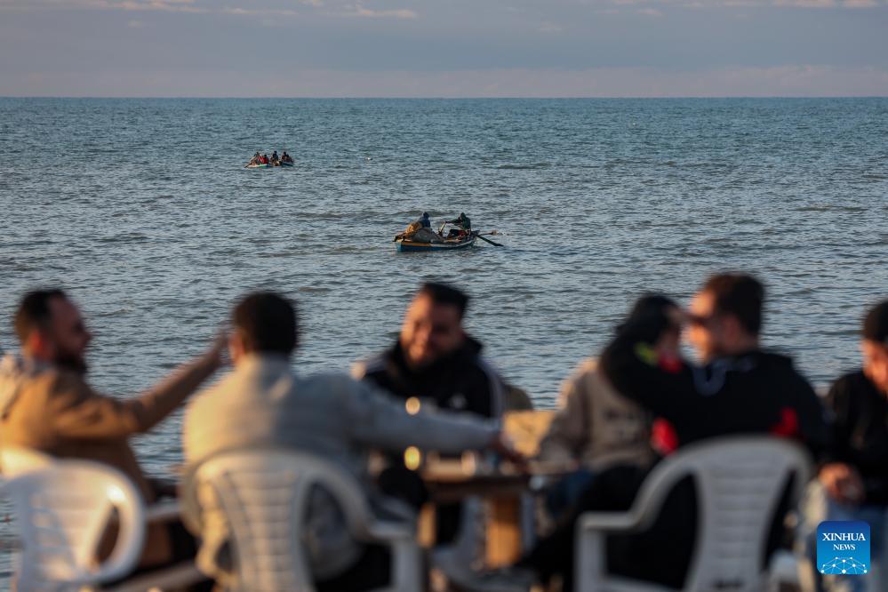 Photo taken on Jan. 16, 2026, shows Palestinian fishermen near the beach of Gaza City. (Photo by Rizek Abdeljawad/Xinhua)