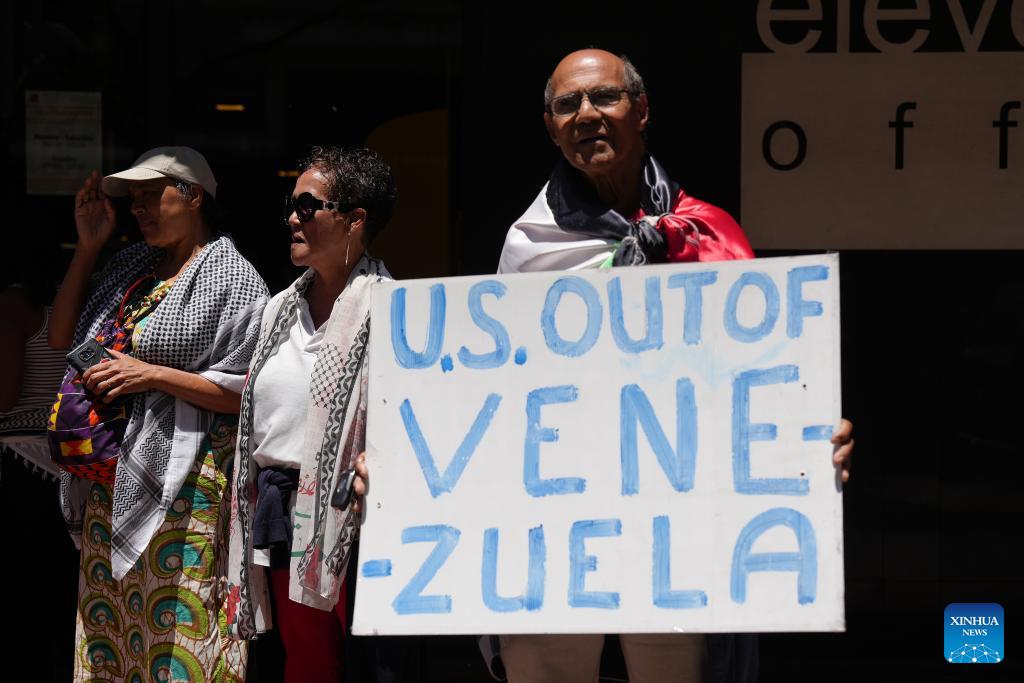 Michael Titus, a 75-year-old retired pharmacist who joined the rally, told Xinhua that the US action against Venezuela is "illegal," calling it "only a symptom of what America is doing in the rest of the world."