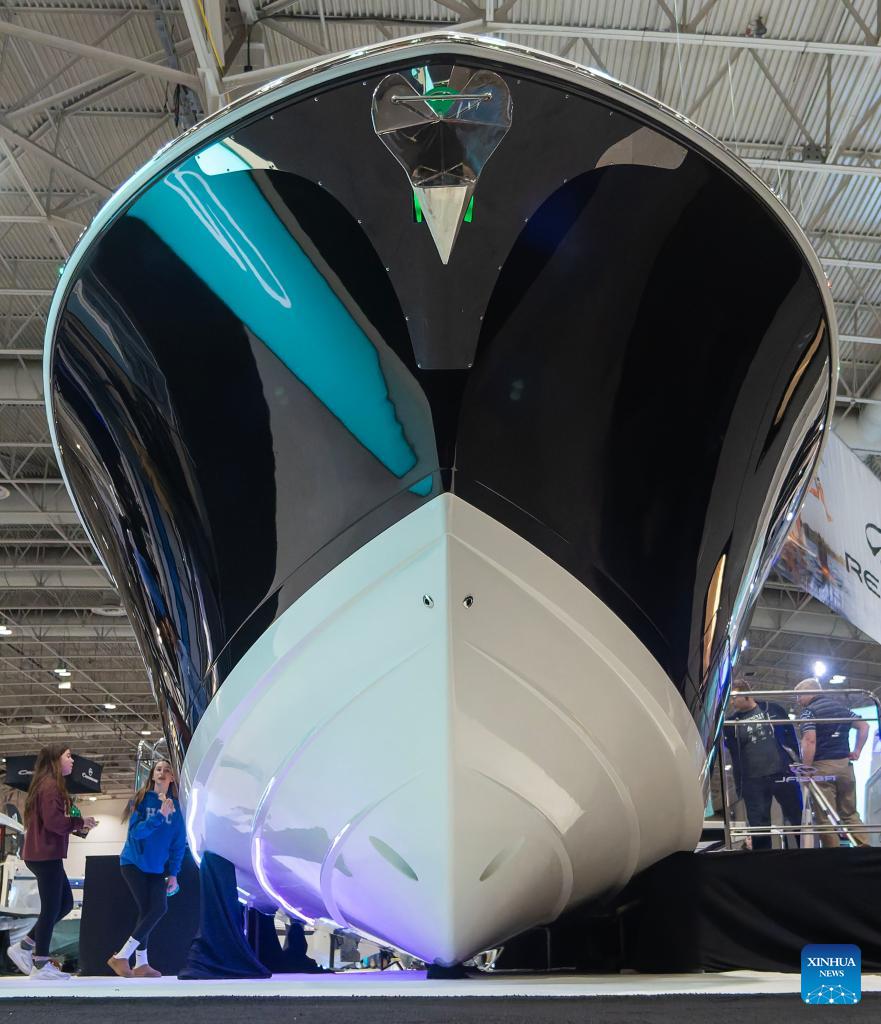 A boat is displayed at the 2026 Toronto International Boat Show in Toronto, Canada, on Jan. 17, 2026. Showcasing more than 1, 000 boats of all sizes, the annual event kicked off here on Saturday and will last until Jan. 25 this year. (Photo by Zou Zheng/Xinhua)
