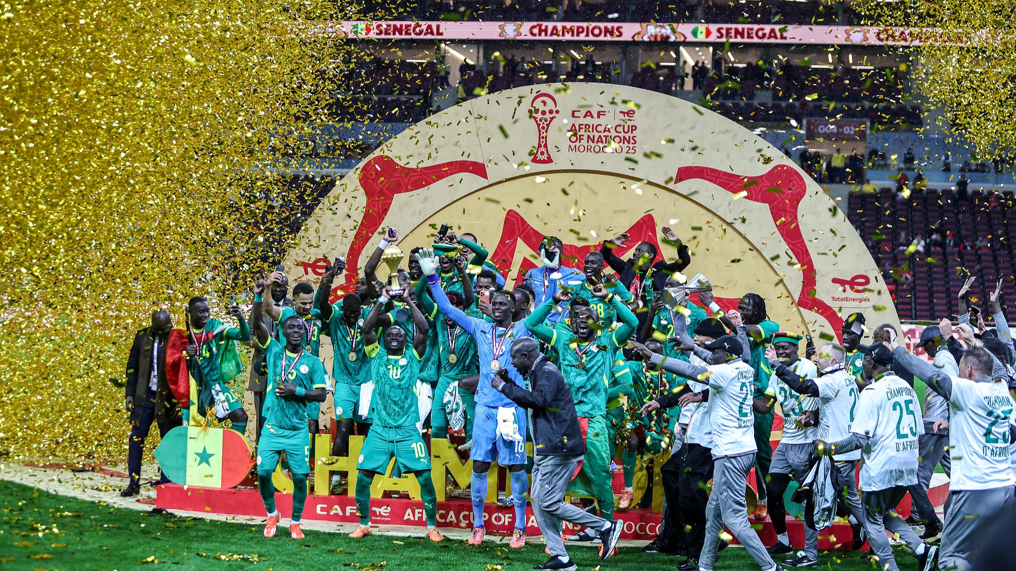 Senegal celebrate as the AFCON champions after the Africa Cup of Nations Final match between Senegal and Morocco at Prince Moulay Abdellah Stadium on January 18, 2026 in Rabat, Morocco. (Photo: CFP)
