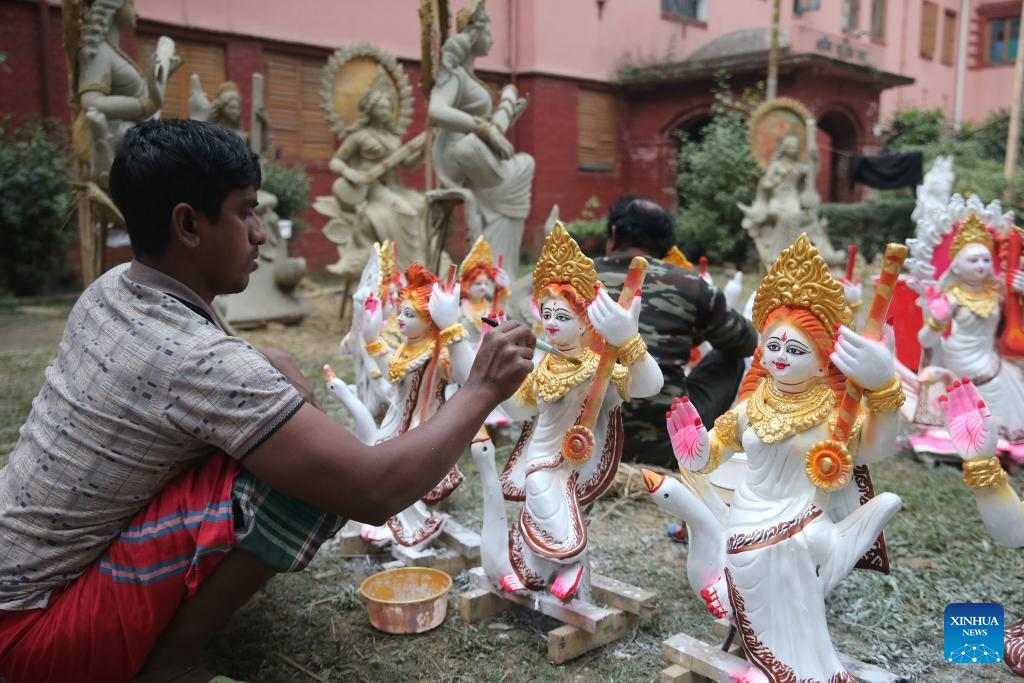 Bangladeshi idol makers paint clay idols ahead of Saraswati Puja Festival