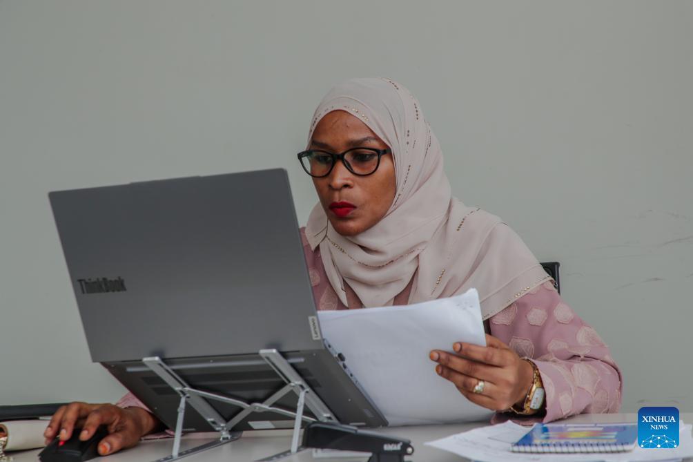 Amina works at her office in Dar es Salaam, Tanzania, Jan 15, 2026. (Photo: Xinhua/Emmanuel Herman)