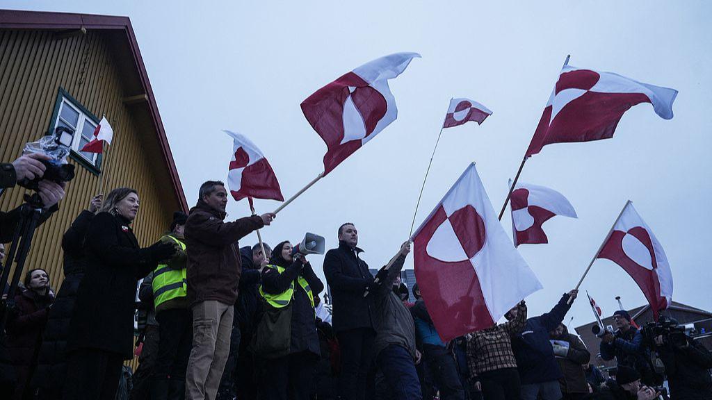 People wave Greenlandic flags as they take part in a demonstration to protest against the U.S. President Donald Trump's plans to take Greenland in Nuuk, Greenland, January 17, 2026. (Photo: VCG)