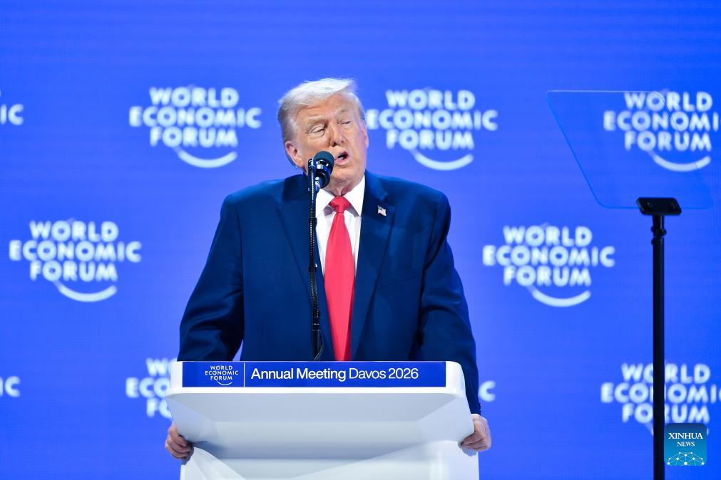 U.S. President Donald Trump addresses the World Economic Forum Annual Meeting in Davos, Switzerland, Jan. 21, 2026. (Photo: Xinhua)