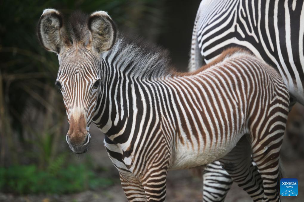 A female zebra foal is seen at the Singapore Zoo in Singapore, Jan. 22, 2026. The zebra foal was born here on Dec. 2, 2025. (Photo by Then Chih Wey/Xinhua)