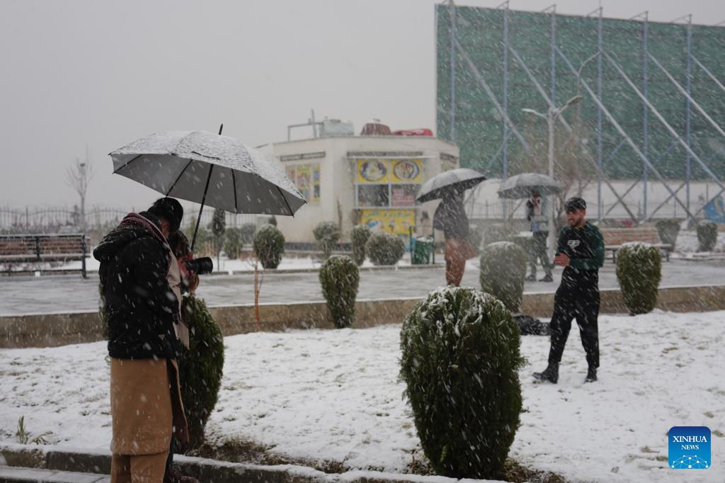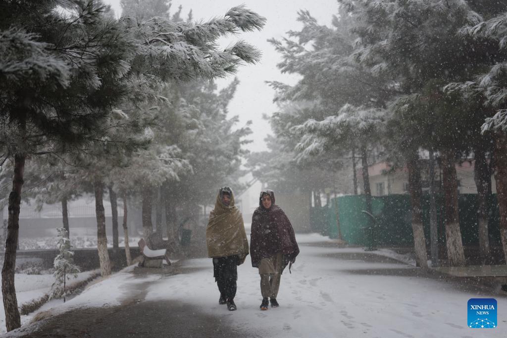 People walk in snow in Kabul, Afghanistan, Jan. 22, 2026. (Xinhua/Li Ang)