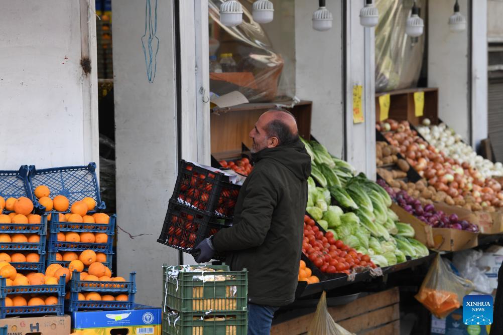 A vendor moves packed vegetables in Tehran, Iran, Jan. 21, 2026. (Xinhua/Shadati)