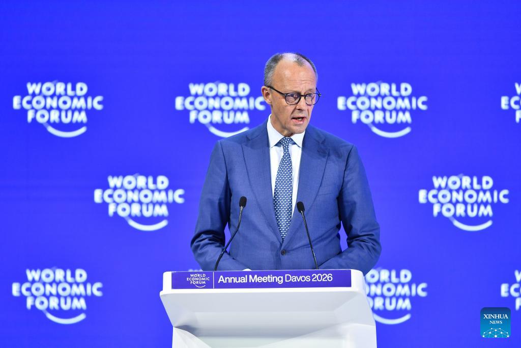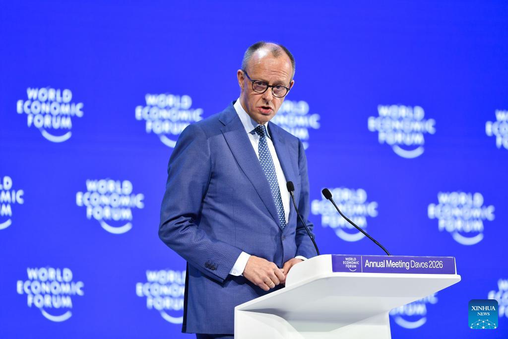 German Chancellor Friedrich Merz speaks at the World Economic Forum (WEF) Annual Meeting 2026 in Davos, Switzerland, Jan. 22, 2026. (Xinhua/Lian Yi)