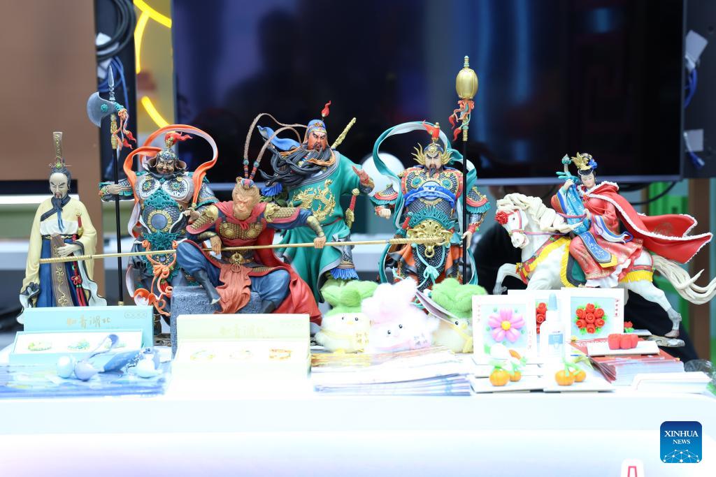 Handicrafts are displayed at the China pavilion during the 31st Thai International Travel Fair in Bangkok, Thailand, Jan. 22, 2026. The fair opened here on Thursday, and will last until Jan. 25. (Xinhua/Liu Yang)