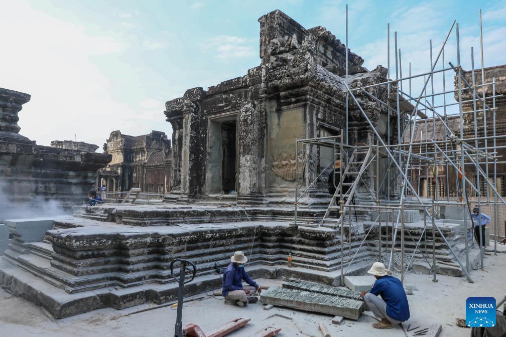 PHNOM PENH, Jan. 22 (Xinhua) -- Archaeologists are actively engaged in the restoration of the northern library at the iconic Angkor Wat in Cambodia's Angkor Archaeological Park, said a news release issued by the APSARA National Authority (ANA) on Thursday.