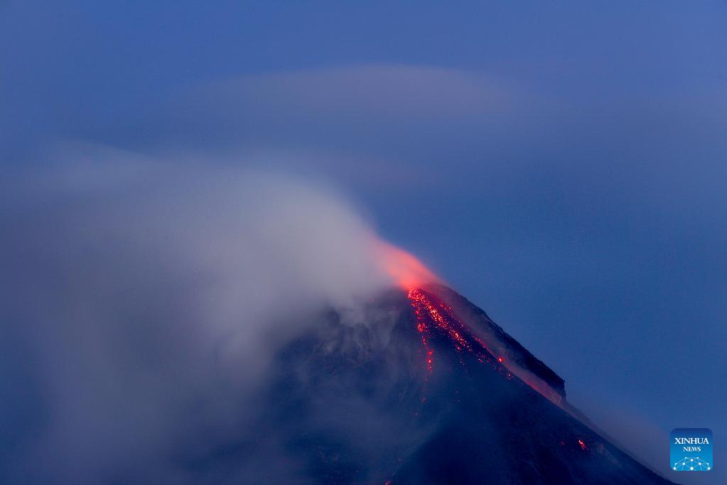 Lava glows on the surface of Mayon Volcano in Albay Province, the Philippines, Jan. 23, 2026. Mayon Volcano has been in a state of unrest again in recent weeks. (Xinhua/Rouelle Umali)