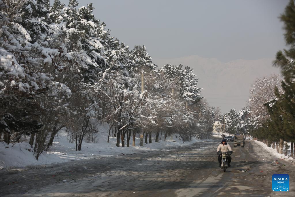 A man rides a motorcycle in snow-covered Paghman district, Kabul, Afghanistan, Jan. 25, 2026. At least 61 people were killed and 110 others injured due to heavy snowfall and rains across Afghanistan on Wednesday and Thursday, the National Disaster Management Authority (NDMA) said in a statement on Saturday. In addition to the human losses, the storms have completely or partially destroyed 458 homes, the NDMA added. (Photo: Xinhua)
