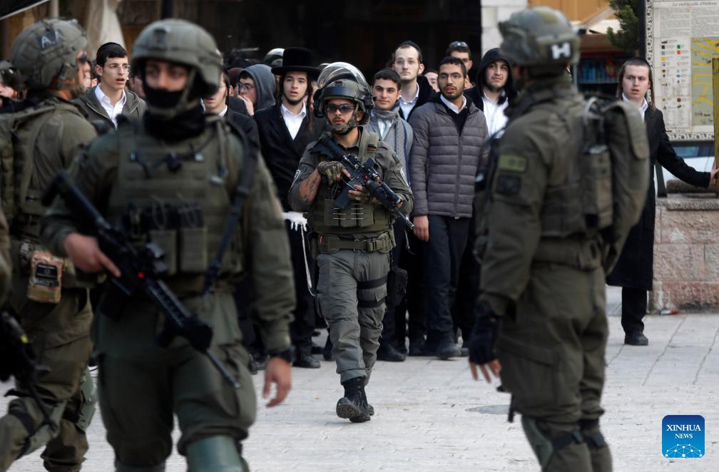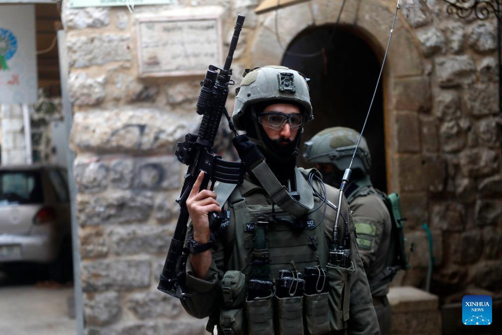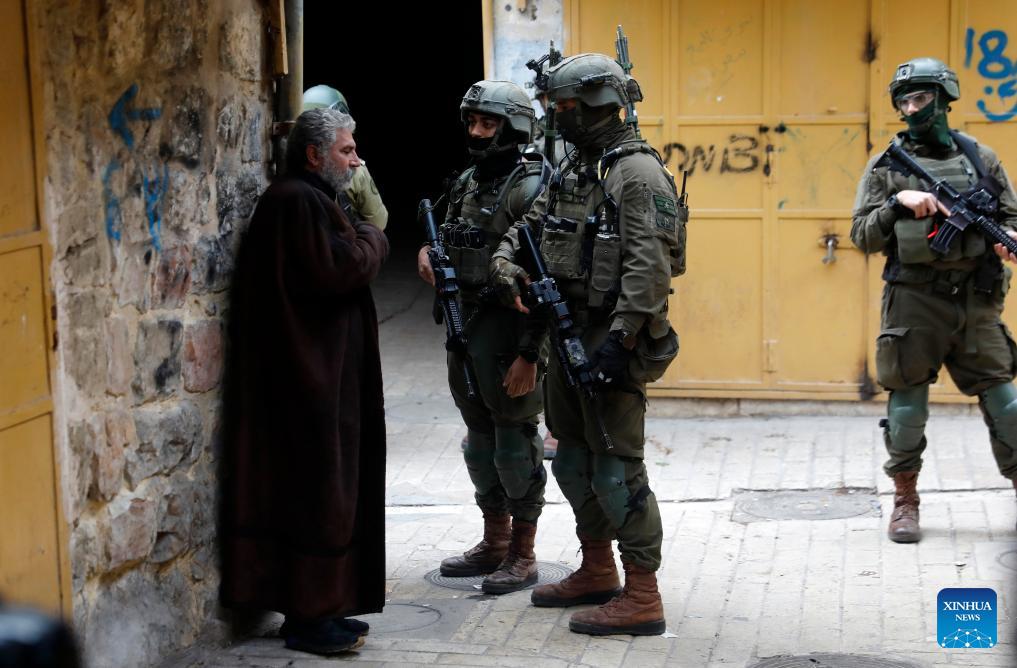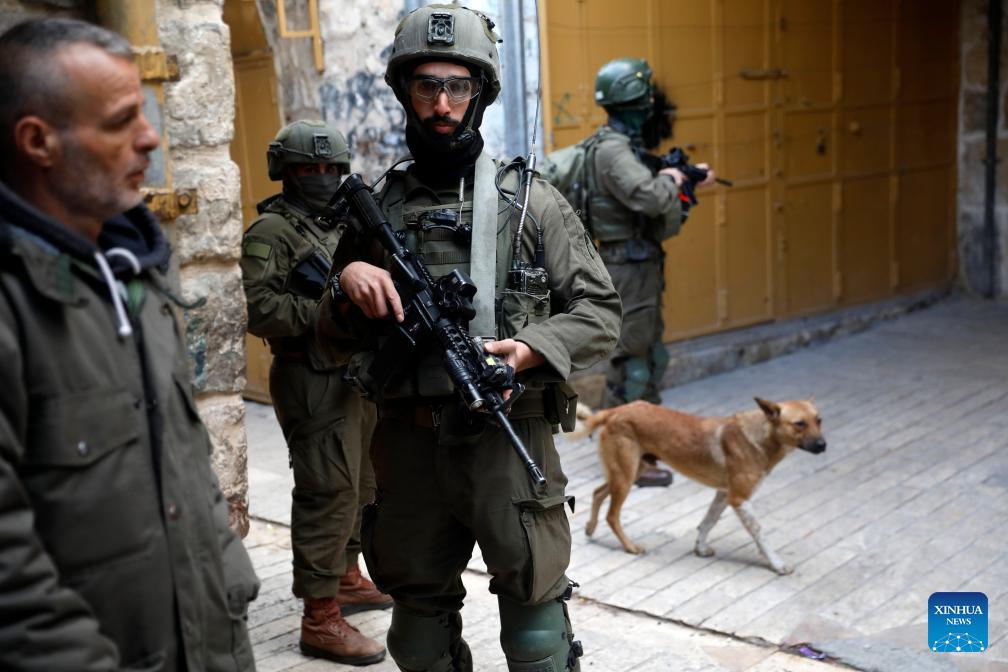 Members of Israeli forces secure the streets for Israeli settlers, in the West Bank city of Hebron, on Jan. 24, 2026. (Photo by Mamoun Wazwaz/Xinhua)