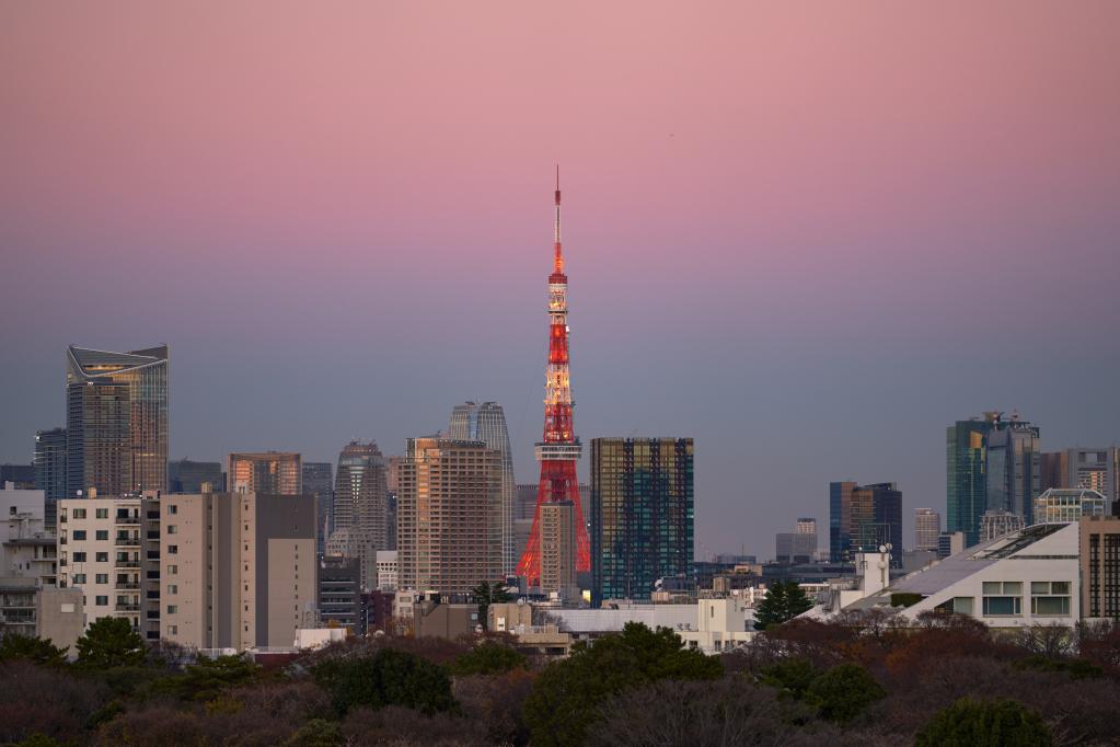 This photo taken on December 19, 2022 shows a view of the Tokyo Tower at sunset in Tokyo, Japan. (Photo: Xinhua)