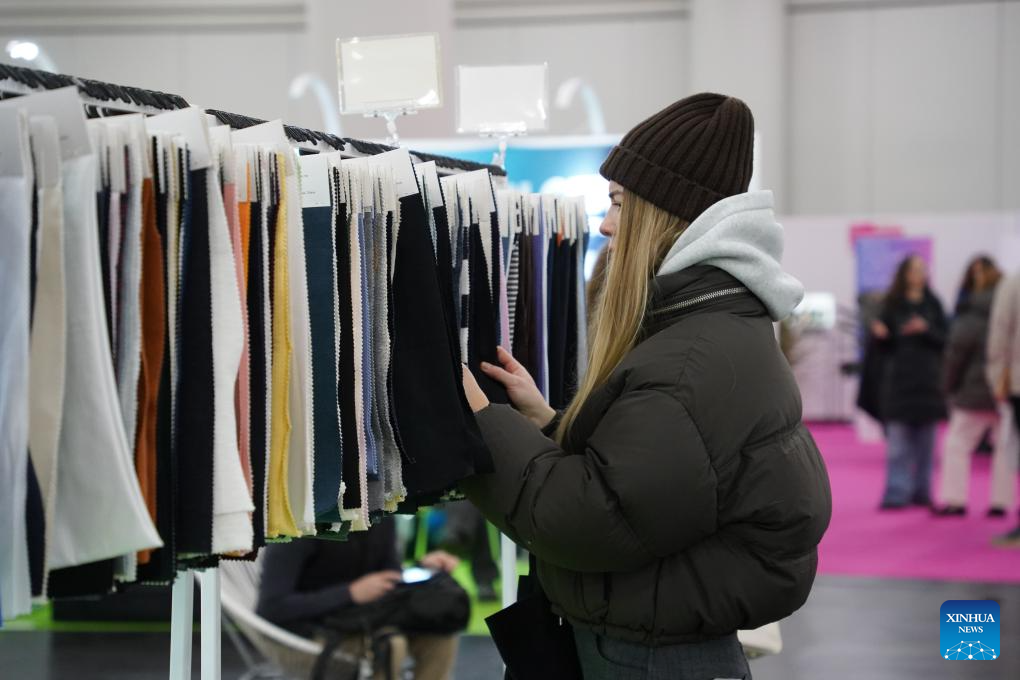 A visitor checks textile samples at a booth of Texworld NYC, a textile sourcing trade show, in New York City, the United States, on Jan. 20, 2026. Multiple rounds of tariffs and growing policy uncertainty are reshaping global textile sourcing, placing mounting pressure on manufacturers and brands.(Photo: Xinhua)