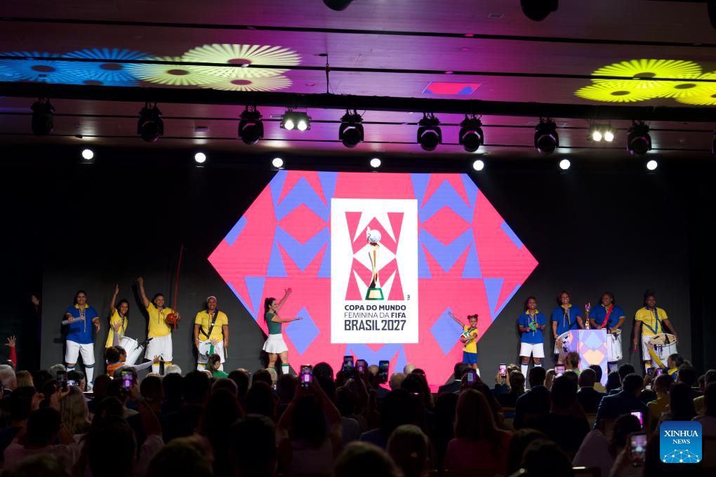 The emblem and slogan for the FIFA Women's World Cup 2027 are unveiled in Rio de Janeiro, Brazil Jan. 25, 2026. FIFA officially launched the FIFA Women's World Cup 2027 and unveiled the tournament's emblem, slogan and sonic identity on Monday. (Xinhua/Zhou Yongsui)