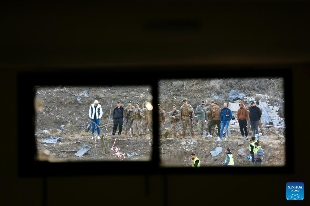 People gather at the scene of an Israeli airstrike in Kfardounine, southern Lebanon, Jan. 25, 2026. Two Hezbollah members were killed, and five other people injured on Sunday in Israeli airstrikes on southern Lebanon, Lebanon's state-run National News Agency (NNA) reported.