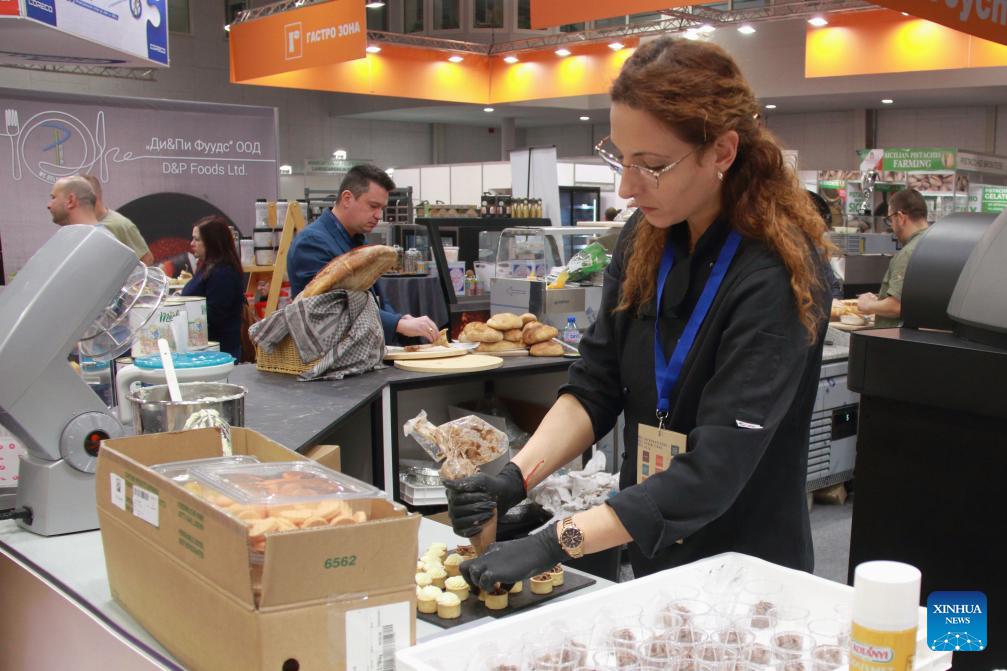 A chef prepares food in a booth at the exhibition in Sofia, Bulgaria, Jan. 27, 2026. The 23rd edition of the international exhibition SIHRE kicked off in the Inter Expo Center here on Tuesday offering products and services for restaurants, hotels, and the catering industry. (Xinhua/Yao Yulin)