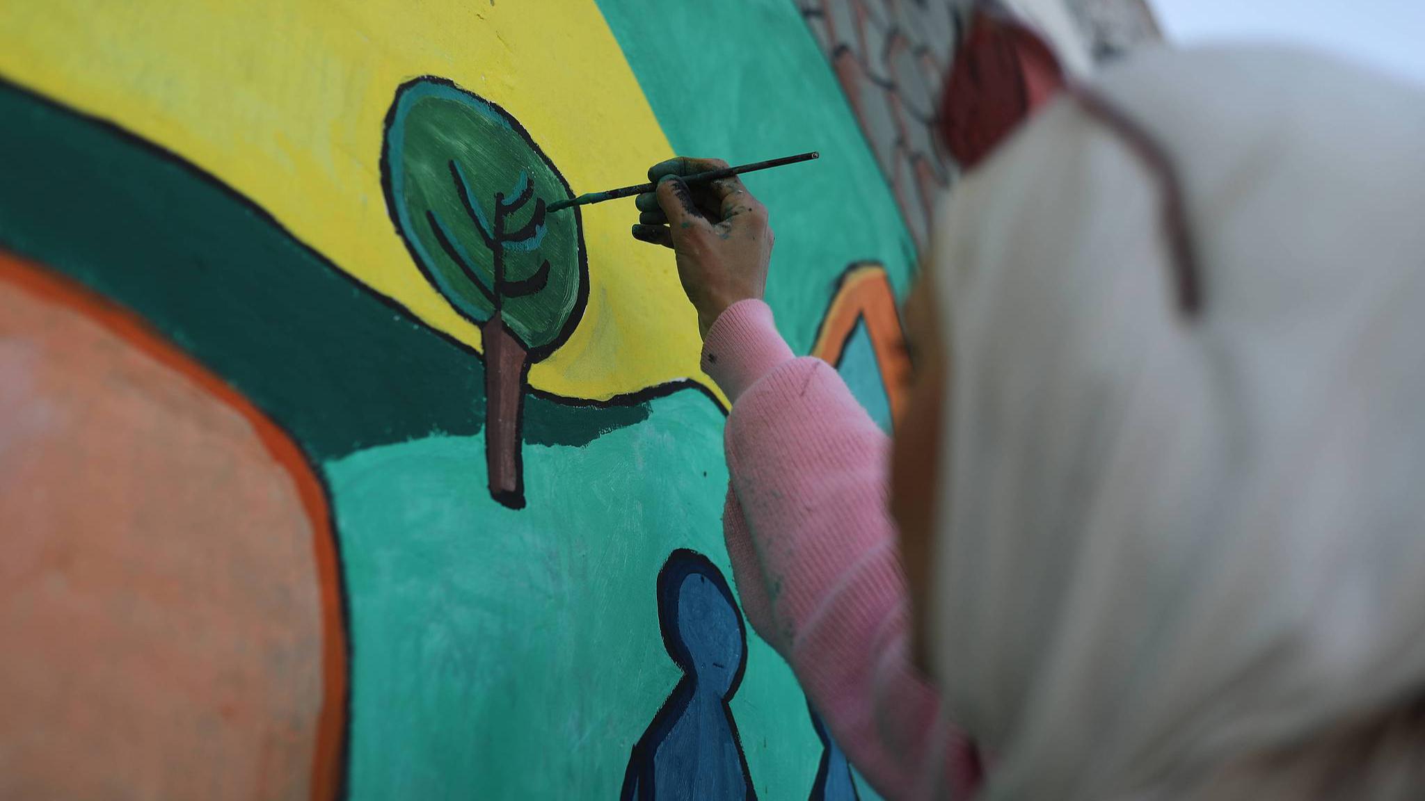 A group of young Palestinians artists painted murals depicting hope, in Gaza City, January 26, 2026. /VCG