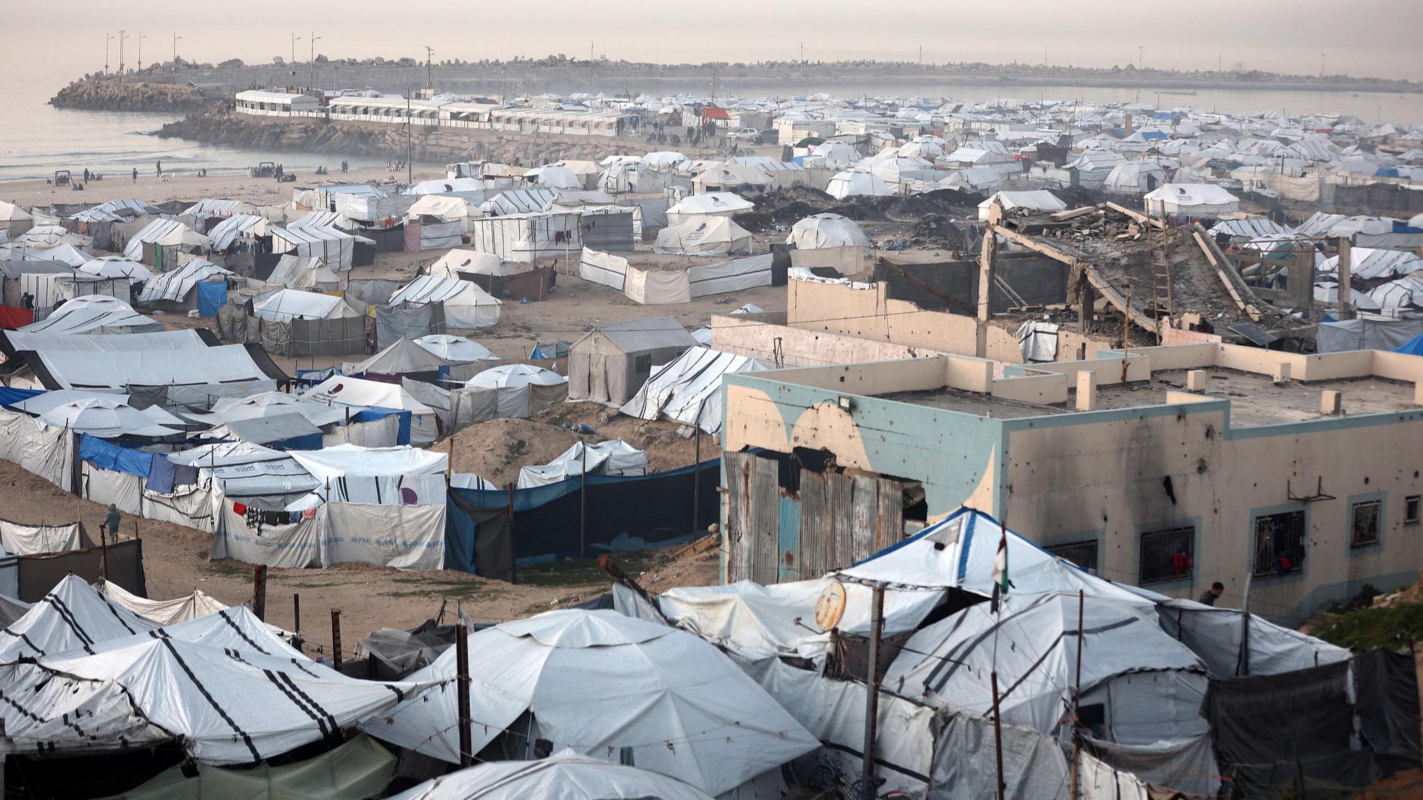Displaced Palestinians live in tents and destroyed buildings in Gaza City, January 26, 2026. /VCG