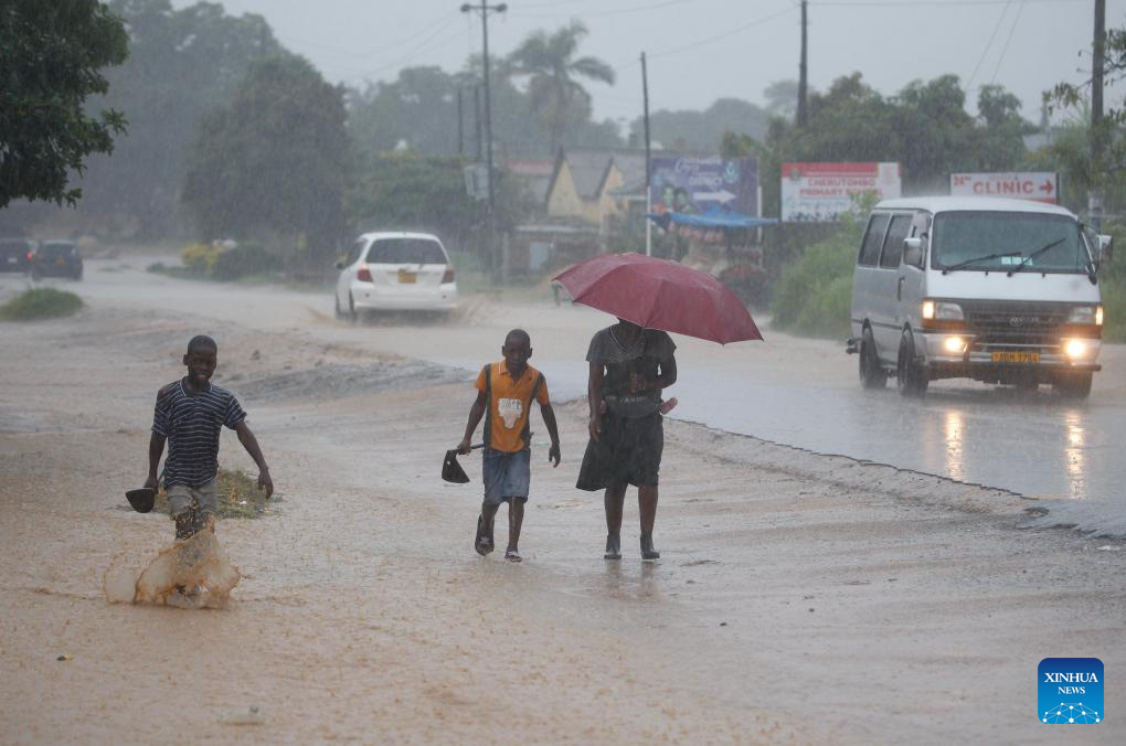 People walk in heavy rain in Harare, Zimbabwe, Jan. 24, 2026. (Photo: Xinhua)