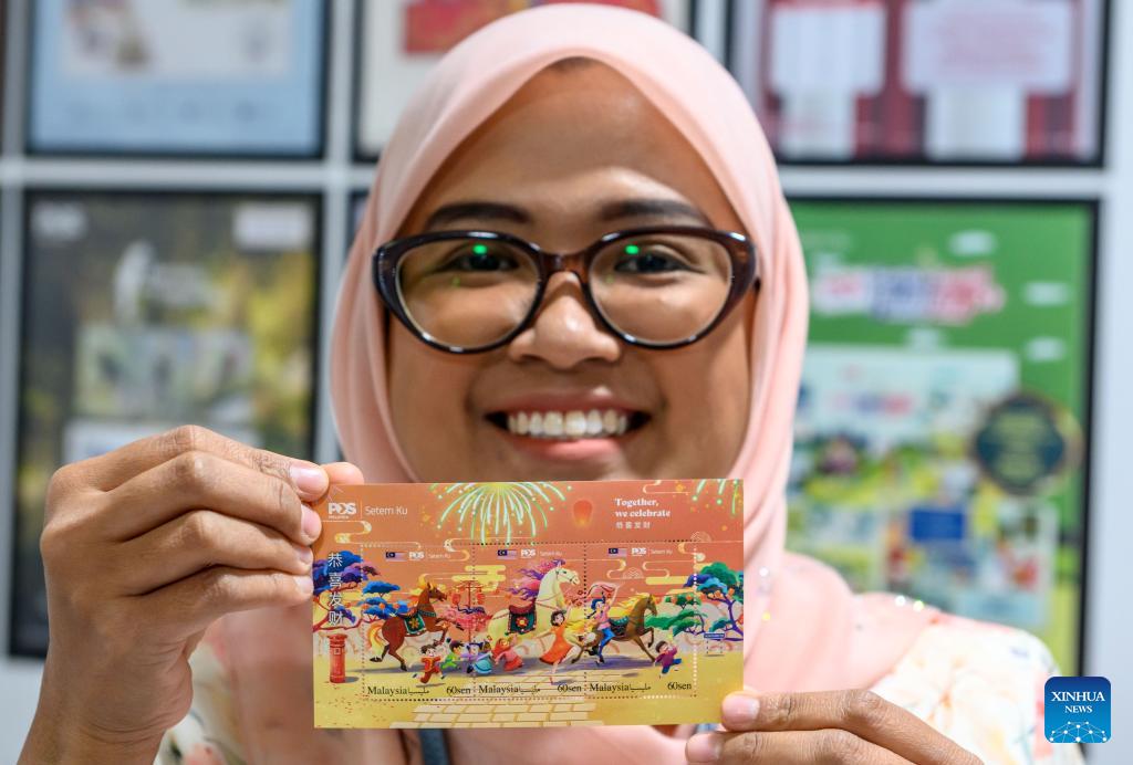 A staff member shows horse-themed stamps marking the Year of the Horse in Kuala Lumpur, Malaysia, Jan. 29, 2026. Malaysia issused a set of stamps to celebrate the Year of the Horse on Thrusday. (Photo by Chong Voon Chung/Xinhua)